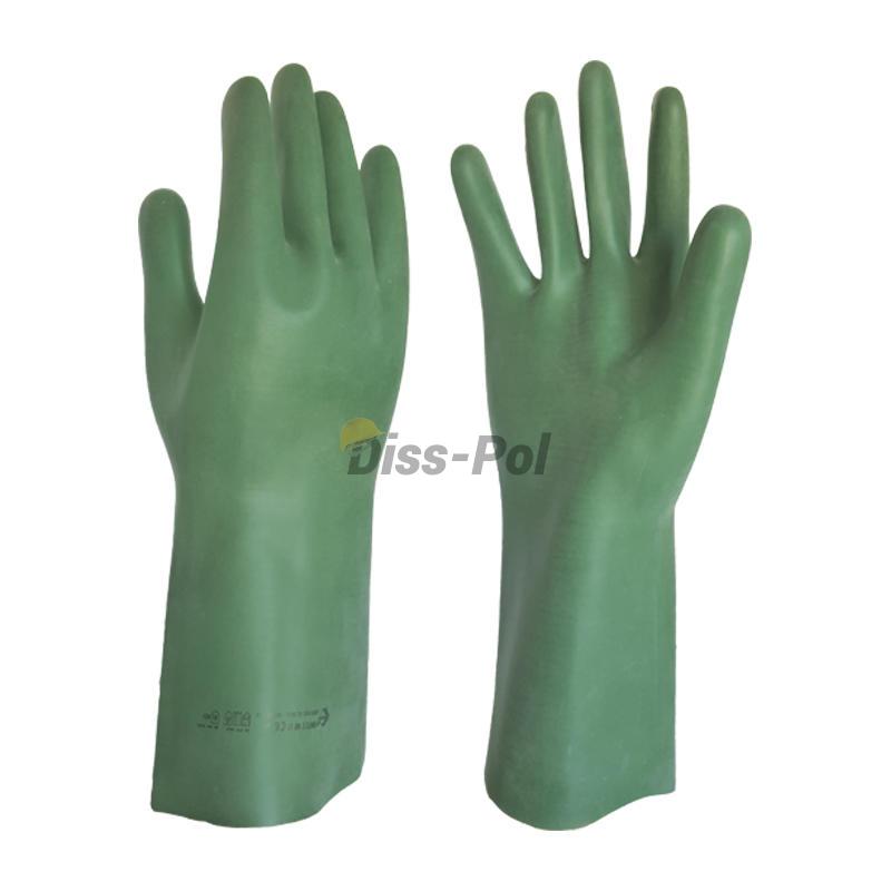 Specjalistyczne rękawice kwasoodporne Antek wyprodukowane z naturalnej gumy. Pięciopalcowe. Znajdują zastosowanie w przemyśle chemicznym i spożywczym.