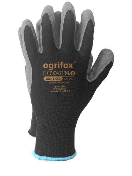 Rękawice robocze powlekane szarym lateksem Opakowanie jednostkowe: 12 par Opakowanie zbiorcze: 240 par(karton)