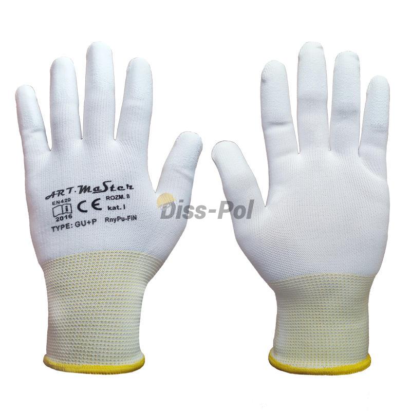 Rękawice z białego nylonu RnyPu-FIN powlekane na czubkach palców białym poliuretanem. Bardzo lekkie i wygodne. Idealnie dopasowują się do dłoni, doskonałe do przeróżnych prac mechanicznym i precyzyjnym. Zakończone ściągaczem.